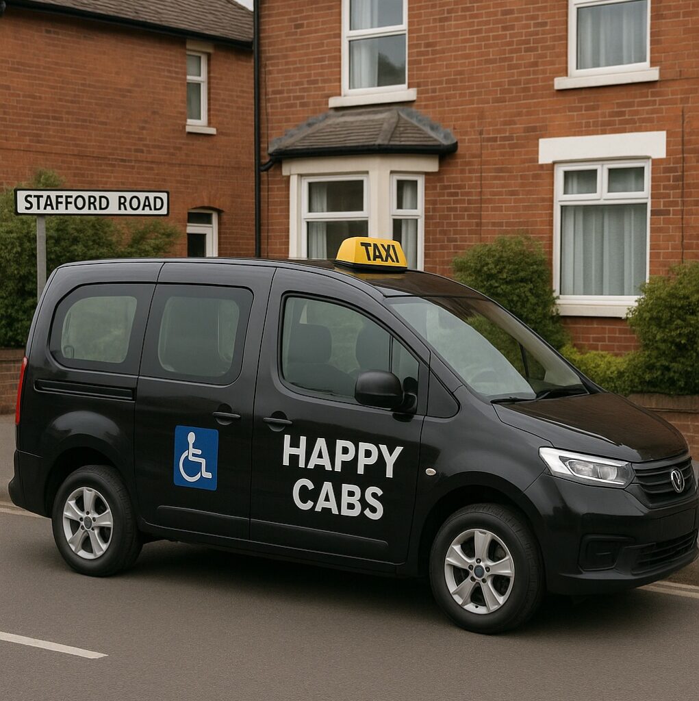 Book wheelchair accessible taxis in Stafford with ramps, secure fittings, and trained drivers. Safe and comfortable travel for every passenger.